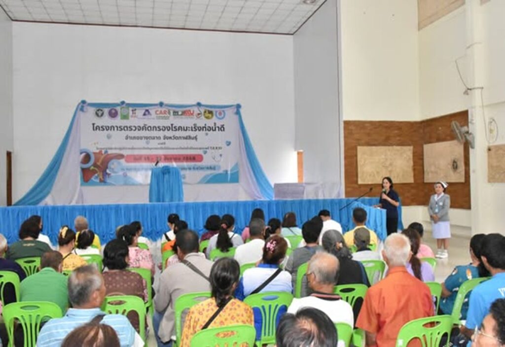 เพื่อคัดกรองเชิงรุกช่วยตรวจพบผู้ป่วยในระยะเริ่มต้น ลดค่าใช้จ่ายการรักษา และเพิ่มโอกาสรอดของผู้ป่วยในพื้นที่เสี่ยงทั้งนี้มีประชาชน เจ้าหน้าที่จากหน่วยงานราชการ ที่สนใจลงทะเบียนตรวจไว้ จำนวน 2,200 ราย และการดำเนินงานในวันที่ 19 สิงหาคม 2568 มีกลุ่มเสี่ยงเข้ารับการตรวจทั้งสิ้น 345 คน สงสัยเป็นมะเร็งท่อน้ำดี Suspected CCA 12 คน(3.45%) ส่งต่อด้วยสาเหตุอื่นๆ 10 คน อาทิ นิ่วในไต, นิ่วในถุงน้ำดี