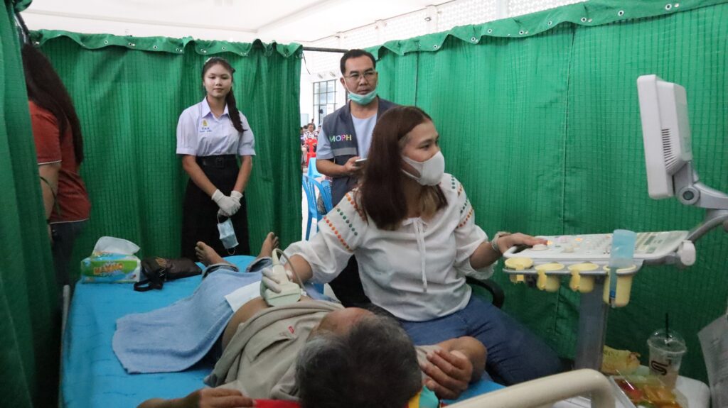 กิจกรรมในวันงาน ได้มีการตรวจคักรองพยาธิใบไม้ตับและอัลตราซาวด์ค้นหากลุ่มเสี่ยงที่สงสัยเป็นมะเร็งท่อน้ำดี ซึ่งมีประชาชน เจ้าหน้าที่หน่วยงานราชการในพื้นที่เข้าร่วมตรวจคัดกรองจำนวนกว่า 799 ราย ซึ่งได้มีผลการตรวจปัสสาวะด้วยชุดตรวจชนิดเร็ว OV ATK จำนวน 799คน พบติดเชื้อพยาธิใบไม้ตับ จำนวน 242 คน (30.28%) ซึ่งได้รับยาฆ่าพยาธิใบไม้ตับในวันงาน ส่วนอัลตราซาวด์ มีกลุ่มเสี่ยงเข้ารับการตรวจทั้งสิ้น 748 คน พบสงสัยเป็นมะเร็งท่อน้ำดี 11 คน (1.47%)