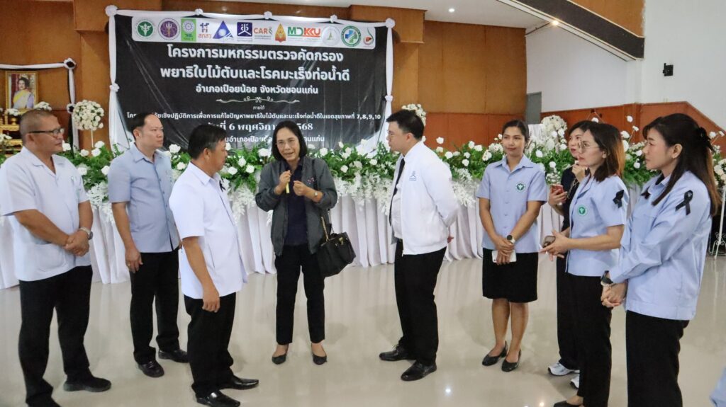 เมื่อวันที่ 6 พฤศจิกายน 2568 ที่ผ่านมา รศ.ดร.วัชรินทร์ ลอยลม ผู้อำนวยการสถาบันวิจัยมะเร็งท่อน้ำดี มหาวิทยาลัยขอนแก่น สถาบันวิจัยมะเร็งท่อน้ำดี มหาวิทยาลัยขอนแก่น ศูนย์ความเป็นเลิศทางการแพทย์มะเร็งท่อน้ำดี โรงพยาบาลศรีนครินทร์ คณะแพทยศาสตร์ มหาวิทยาลัยขอนแก่น และ มูลนิธิมะเร็งท่อน้ำดี ร่วมกับ องค์การบริหารส่วนจังหวัดขอนแก่น, โรงพยาบาลเปือยน้อย สำนักงานสาธารณสุขอำเภอเปือยน้อย สำนักงานสาธารณสุขจังหวัดขอนแก่น จัดกิจกรรม มหกรรมตรวจคัดกรองพยาธิใบไม้ตับและโรคมะเร็งท่อน้ำดี อำเภอเปือยน้อย จังหวัดขอนแก่น