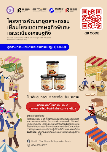 ในปัจจุบันการเปลี่ยนแปลงสู่การบริโภคอาหารที่เป็นมิตรต่อสิ่งแวดล้อมและมีประโยชน์ต่อสุขภาพกำลังเป็นกระแสสำคัญของโลก การพัฒนาผลิตภัณฑ์อาหารจากพืชที่มีคุณค่าทางโภชนาการสูงจึงกลายเป็นความท้าทายที่น่าสนใจสำหรับอุตสาหกรรมอาหาร โครงการพัฒนาโปรตีนอบกรอบ 3 รส เจ ของบริษัท เฮลตี้ไทยวีแกนแอนด์เวจเจททาเรียนฟู้ดส์ จำกัด ณ ตำบลกลางดง อำเภอปากช่อง จังหวัดนครราชสีมา จึงเป็นตัวอย่างที่โดดเด่นของการสร้างสรรค์นวัตกรรมอาหารที่ตอบสนองความต้องการของผู้บริโภคสมัยใหม่