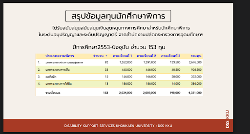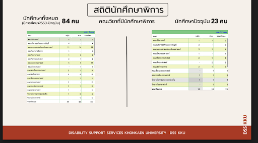 ความแตกต่างทางกายภาพและสติปัญญาไม่ควรเป็นอุปสรรคต่อการเข้าถึงการศึกษาที่มีคุณภาพ ศูนย์บริการนักศึกษาพิการ มหาวิทยาลัยขอนแก่น หรือที่รู้จักในนาม DSS KKU ได้ยืนหยัดเป็นสัญลักษณ์แห่งความหวังและความเป็นไปได้ที่ไร้ขีดจำกัด ตลอดกว่าสิบสี่ปีที่ผ่านมา ตั้งแต่ปีการศึกษา 2553 จนถึงปัจจุบัน ศูนย์แห่งนี้ได้เปิดประตูโอกาสให้กับนักศึกษาพิการจำนวน 84 คน ทำให้พวกเขาได้สัมผัสประสบการณ์การเรียนรู้ในระดับอุดมศึกษาอย่างเท่าเทียมกับเพื่อนร่วมรุ่น