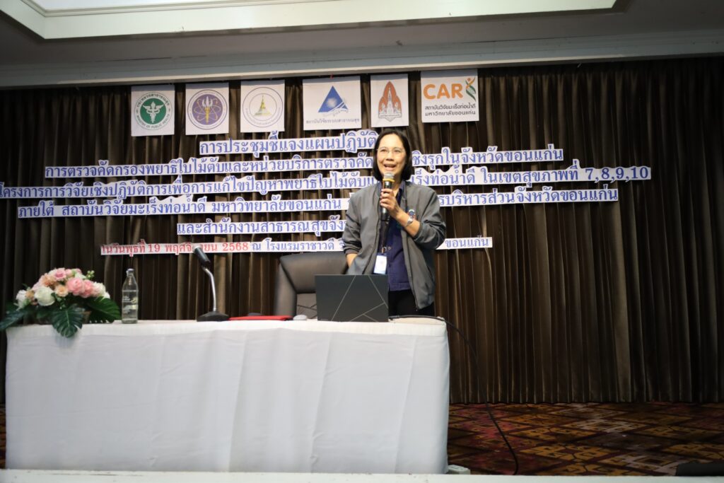 วันที่ 19 พฤศจิกายน 2568 สถาบันวิจัยมะเร็งท่อน้ำดี มหาวิทยาลัยขอนแก่น นำโดย รศ.ดร.วัชรินทร์ ลอยลม ผู้อำนวยการสถาบันวิจัยมะเร็งท่อน้ำดี มหาวิทยาลัยขอนแก่น ร่วมกับ องค์การบริหารส่วนจังหวัดขอนแก่น สำนักงานสาธารณสุขจังหวัดขอนแก่น และ สำนักงานป้องกันควบคุมโรคที่ 7 จังหวัดขอนแก่น จัดกิจกรรม ประชุมชี้แจงแผนปฏิบัติการตรวจคัดกรองพยาธิใบไม้ตับและหน่วยบริการตรวจคัดกรองเชิงรุกในจังหวัดขอนแก่น ณ โรงแรมราชาวดี รีสอร์ท แอนด์ โฮเทล ขอนแก่น