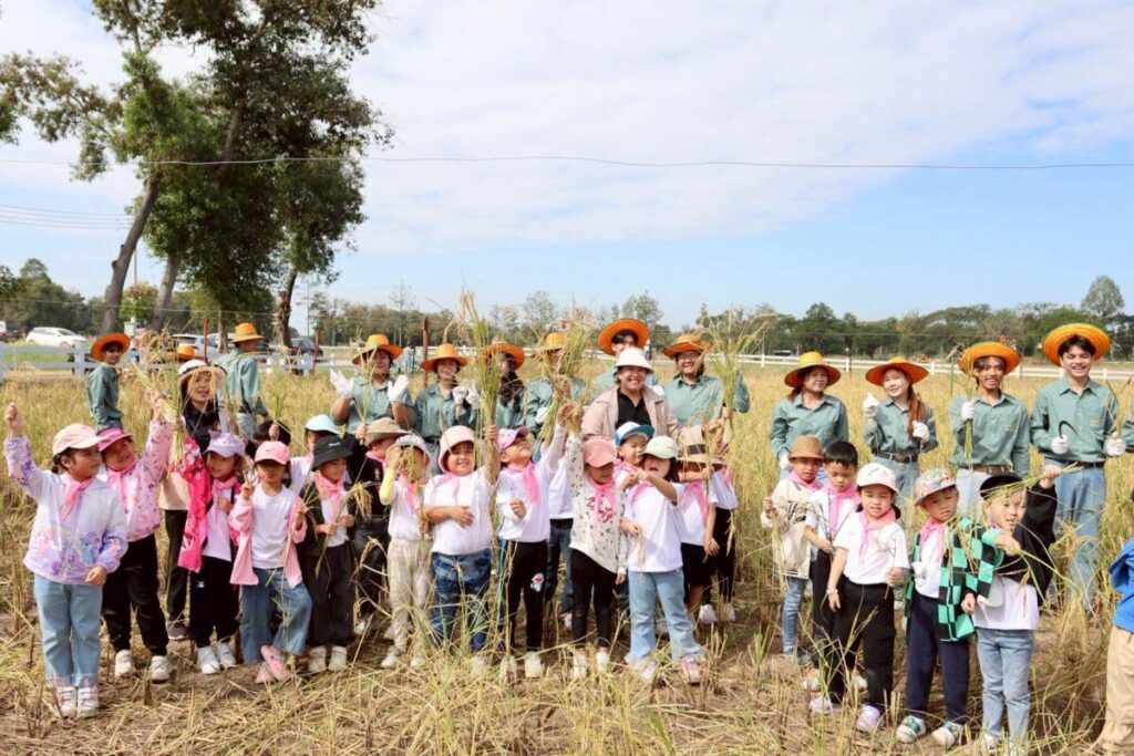 ต่อมานักเรียนชั้นอนุบาลร่วมกิจกรรมเกี่ยวข้าว นวดข้าว ทำขวัญข้าว เปิดประสบการณ์ตรงด้านอาชีพเกษตรกรรม วัฒนธรรม และภูมิปัญญาไทยอย่างลึกซึ้งและสนุกสนาน นอกจากนี้ยังส่งเสริม IQ, EQ และพัฒนาทักษะประสบการณ์นอกห้องเรียนให้แข็งแกร่งมากยิ่งขึ้น
