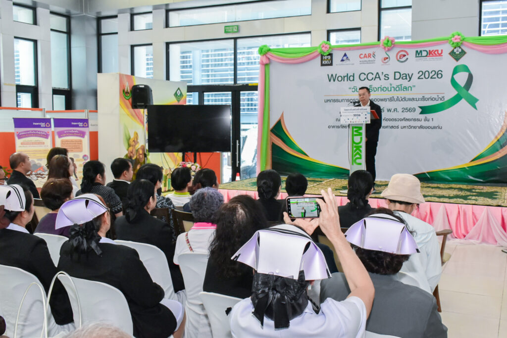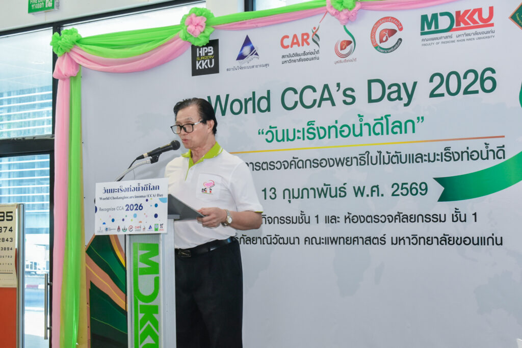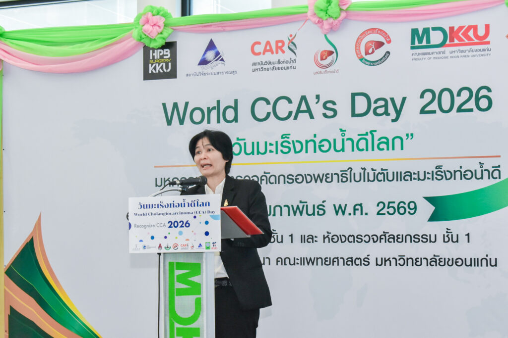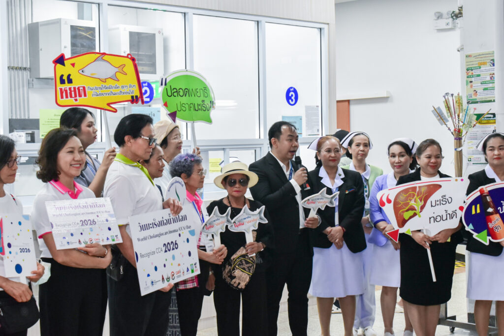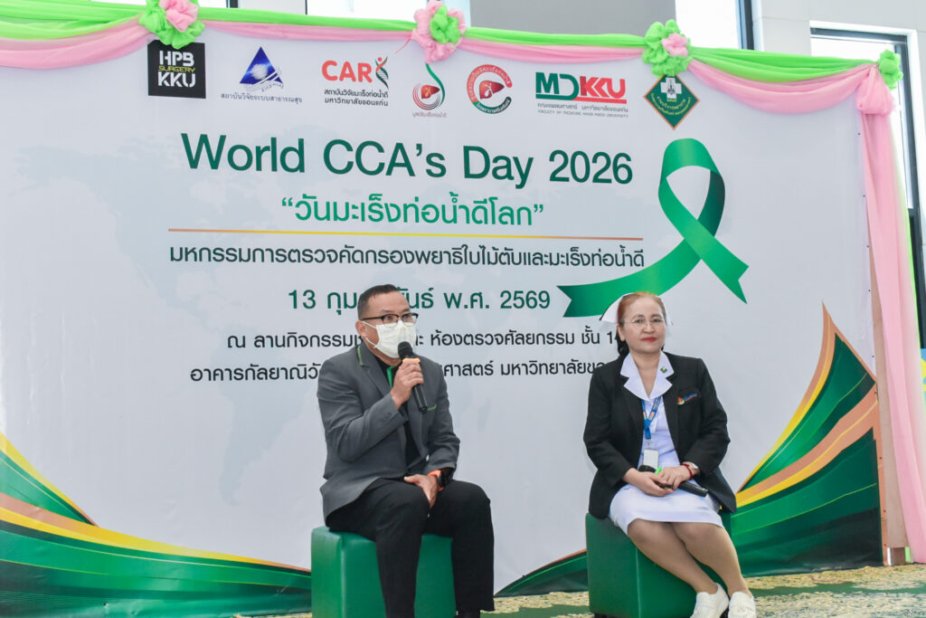 วันที่ 13 กุมภาพันธ์ 2569 สถาบันวิจัยมะเร็งท่อน้ำดี มหาวิทยาลัยขอนแก่น และ มูลนิธิมะเร็งท่อน้ำดี ร่วมกับ ศูนย์ความเป็นเลิศทางการแพทย์มะเร็งท่อน้ำดี โรงพยาบาลศรีนครินทร์ คณะแพทยศาสตร์ มหาวิทยาลัยขอนแก่น ร่วมจัดกิจกรรม มหกรรมการตรวจคัดกรองพยาธิใบไม้ตับและมะเร็งท่อน้ำดี “วันมะเร็งท่อน้ำดีโลก World CCA’s Day 2026” ณ ลานกิจกรรมชั้น 1 และ ห้องตรวจศัลยกรรม ชั้น 1 อาคารกัลยาณิวัฒนา คณะแพทยศาสตร์ มหาวิทยาลัยขอนแก่น