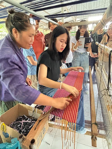 ขั้นตอนที่สำคัญคือการให้ประธานกลุ่มวิสาหกิจทุ่งเศรษฐีขอนแก่นมาบรรยายให้นักศึกษาฟัง ตามด้วยการลงพื้นที่เพื่อศึกษากระบวนการผลิตและการต่อยอดการทอแทรกวัสดุเหลือใช้เมื่อวันจันทร์ที่ 25 มิถุนายน พ.ศ. 2567 การได้สัมผัสกับภูมิปัญญาท้องถิ่นโดยตรงทำให้นักศึกษาเข้าใจถึงคุณค่าและความซับซ้อนของกระบวนการผลิตแบบดั้งเดิม