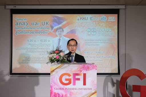 เมื่อโลกของการวิจัยไม่มีพรมแดน การสร้างเครือข่ายความร่วมมือระหว่างประเทศจึงเป็นกุญแจสำคัญในการขับเคลื่อนงานวิจัยไทยสู่มาตรฐานสากล มหาวิทยาลัยขอนแก่นได้ตระหนักถึงความสำคัญนี้ จึงร่วมมือกับสำนักงานคณะกรรมการส่งเสริมวิทยาศาสตร์ วิจัยและนวัตกรรม (สกสว.) และสถานเอกอัครราชทูตอังกฤษประจำประเทศไทย จัดกิจกรรมบรรยายพิเศษที่มีนัยสำคัญยิ่ง