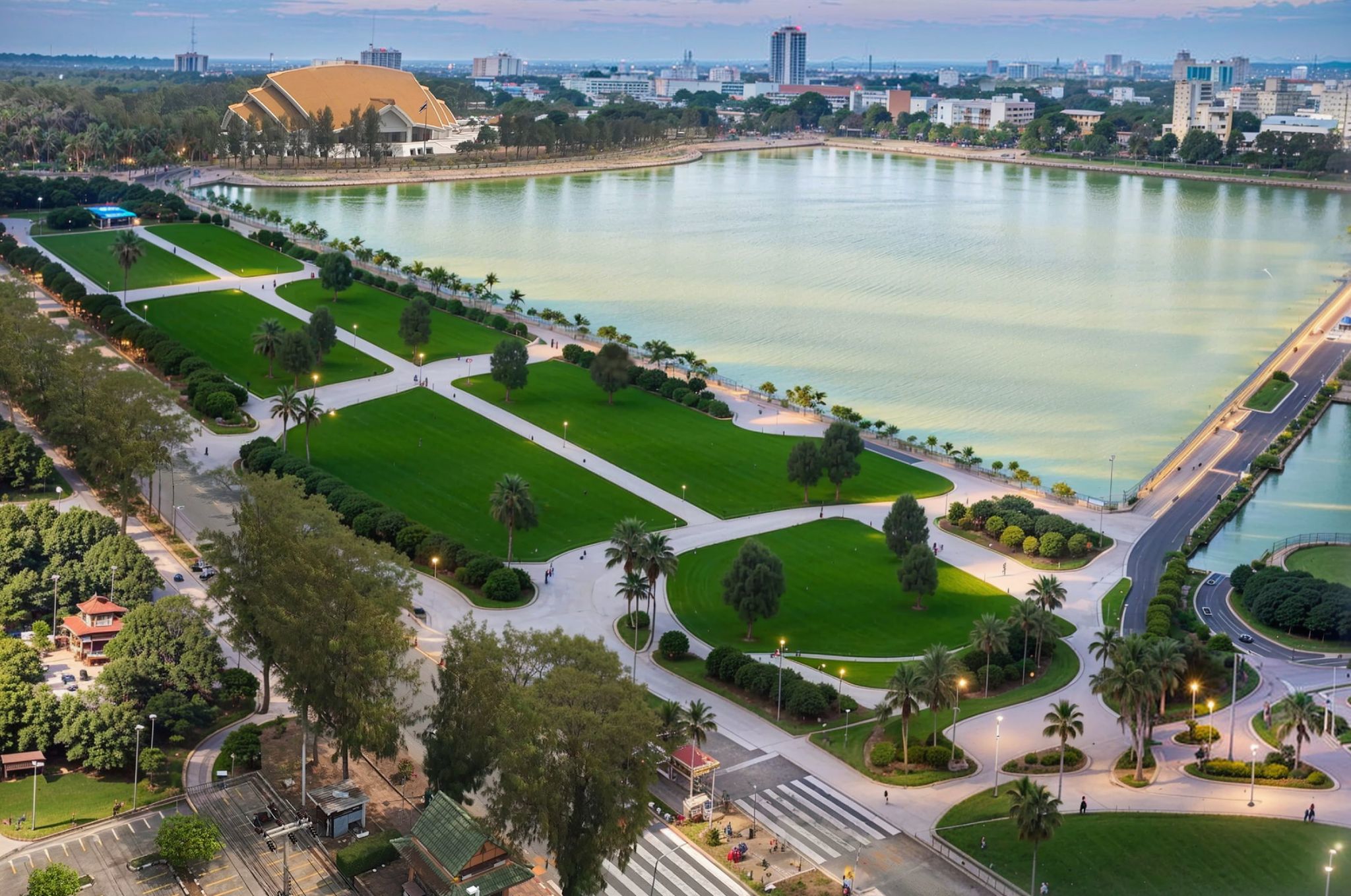 พื้นที่รอบบึงสีฐานฝั่งตะวันตก และตะวันออก ที่ใช้เป็นพื้นที่ออกกำลังกายและเป็นพื้นที่พักผ่อนใจเชิงสร้างสรรค์