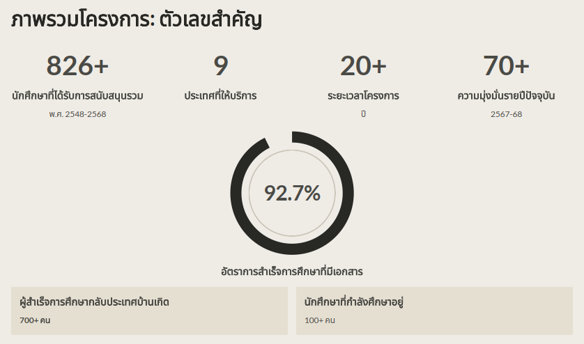 นักศึกษาที่ได้รับการสนับสนุนรวม (พ.ศ. 2548-2568) | 826+ |
