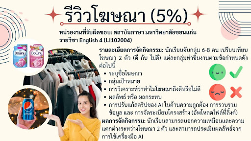 การใช้ AI ในการพัฒนาการจัดการเรียนการสอนรายวิชาภาษาอังกฤษ โดยสถาบันภาษา มหาวิทยาลัยขอนแก่น