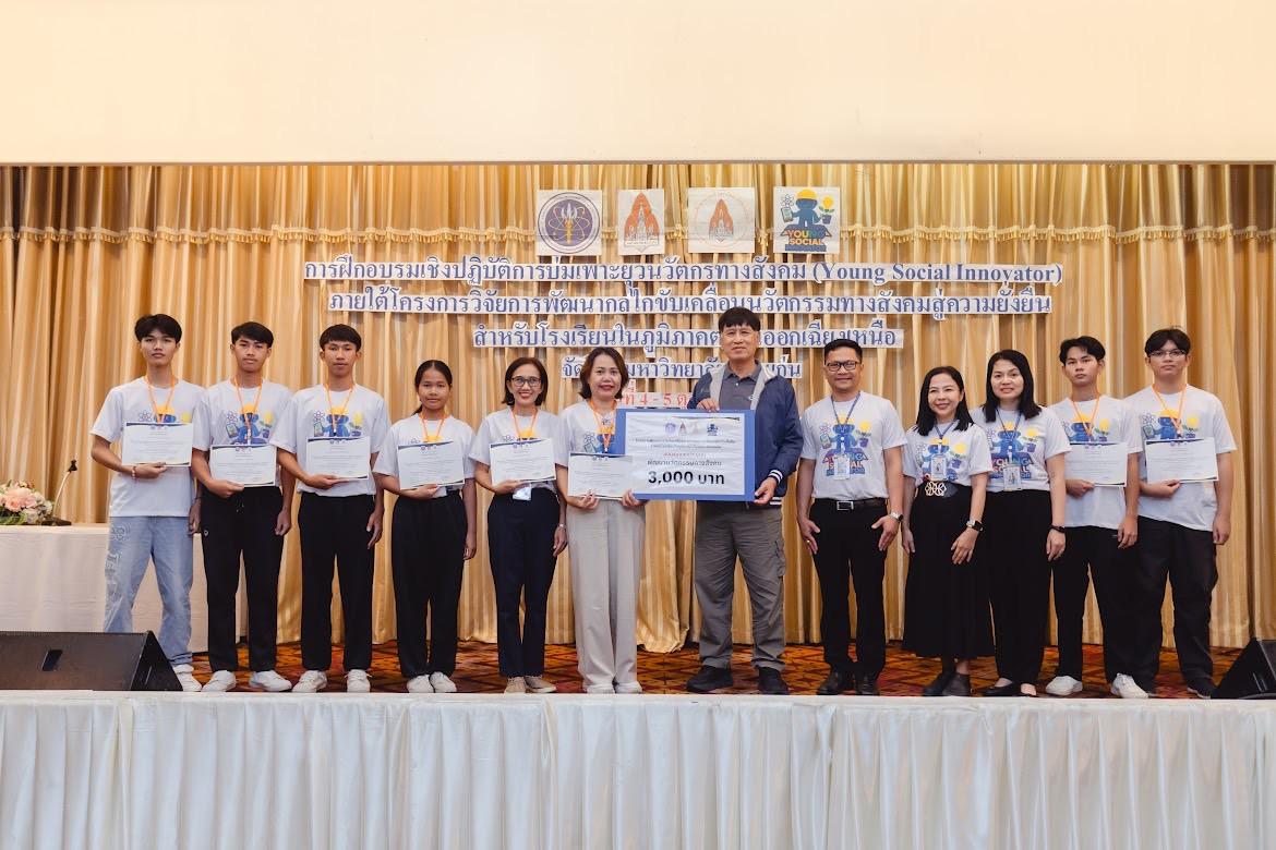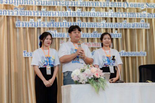 นักเรียนนำเสนอแนวคิดนวัตกรรมทางสังคมหลากหลายสาขา เช่น ขอนสวรรค์ขยายราก (เปลี่ยนหมู่บ้านให้เป็นโรงเรียน) สร้างขี้ให้มีค่า ผงปลาโรยข้าว Streets’ Awareness For Everyone (SAFE) การพัฒนาไบโอพลาสติกจากใบอ้อย ใบไม้ไฟฟ้าดักฝุ่น PM2.5 หุ่นยนต์เพื่อนชาวนา และรถพรวนดินอัตโนมัติ โดยได้รับคำแนะนำจากผู้ทรงคุณวุฒิผ่านกิจกรรม Gallery Walk เพื่อนำไปพัฒนาต่อยอดในระยะต่อไป โครงการนี้เป็นความร่วมมือของนักวิจัยจากหลายสถาบัน ทั้งมหาวิทยาลัยขอนแก่น มหาวิทยาลัยอุบลราชธานี มหาวิทยาลัยบูรพา ศึกษาธิการจังหวัดขอนแก่น และสำนักงานเขตพื้นที่การศึกษามัธยมศึกษาขอนแก่นและชัยภูมิ เป็นภาคีเครือข่ายพัฒนากลไกขับเคลื่อนนวัตกรรมทางสังคมสู่ความยั่งยืน สร้างผลกระทบเชิงบวกต่อเยาวชนที่จะเป็นพลังขับเคลื่อนสังคมอย่างยั่งยืนต่อไป