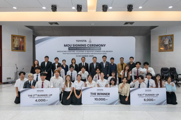 มหาวิทยาลัยขอนแก่น จับมือโตโยต้า ลงนามบันทึกข้อตกลงความร่วมมือทางการศึกษา เพื่อส่งเสริมการเรียนรู้และการแลกเปลี่ยนองค์ความรู้ระหว่างภาคการศึกษาและภาคอุตสาหกรรม ภายใต้แนวคิด “Innovating Together: Academic & Industry Synergy for Growth” มุ่งสร้างนวัตกรรมเพื่อการเติบโตอย่างยั่งยืน ความร่วมมือครั้งนี้ เปิดโอกาสให้นักศึกษาได้พัฒนาศักยภาพ เพิ่มทักษะ และเรียนรู้จากประสบการณ์การทำงานจริง พร้อมเสริมโอกาสในการร่วมงานกับโตโยต้าในอนาคต นอกจากนี้