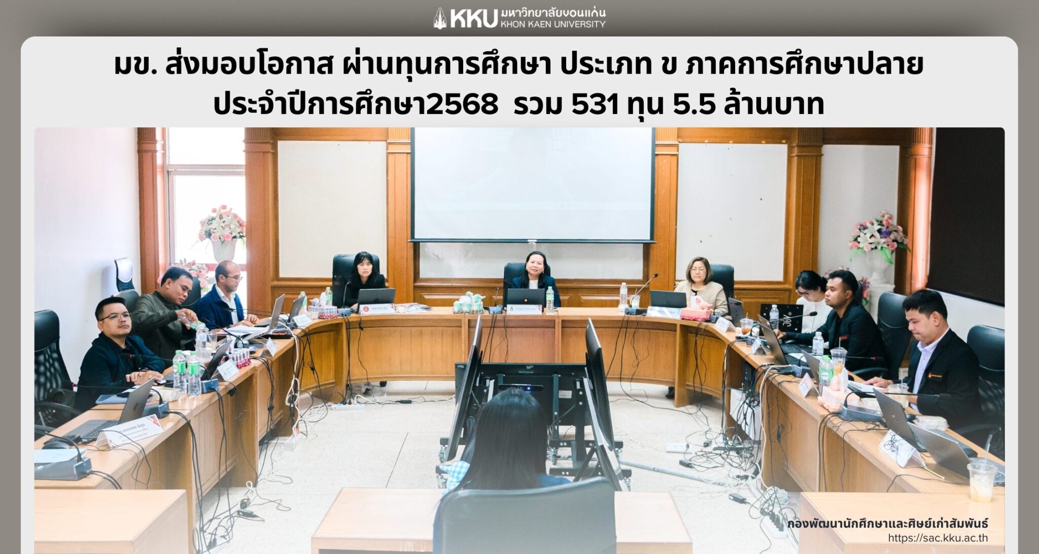 มข. ส่งมอบโอกาส ผ่านทุนการศึกษา ประเภท ข ภาคการศึกษาปลาย ประจำปีการศึกษา 2568 รวม 531 ทุน 5.5 ล้านบาท