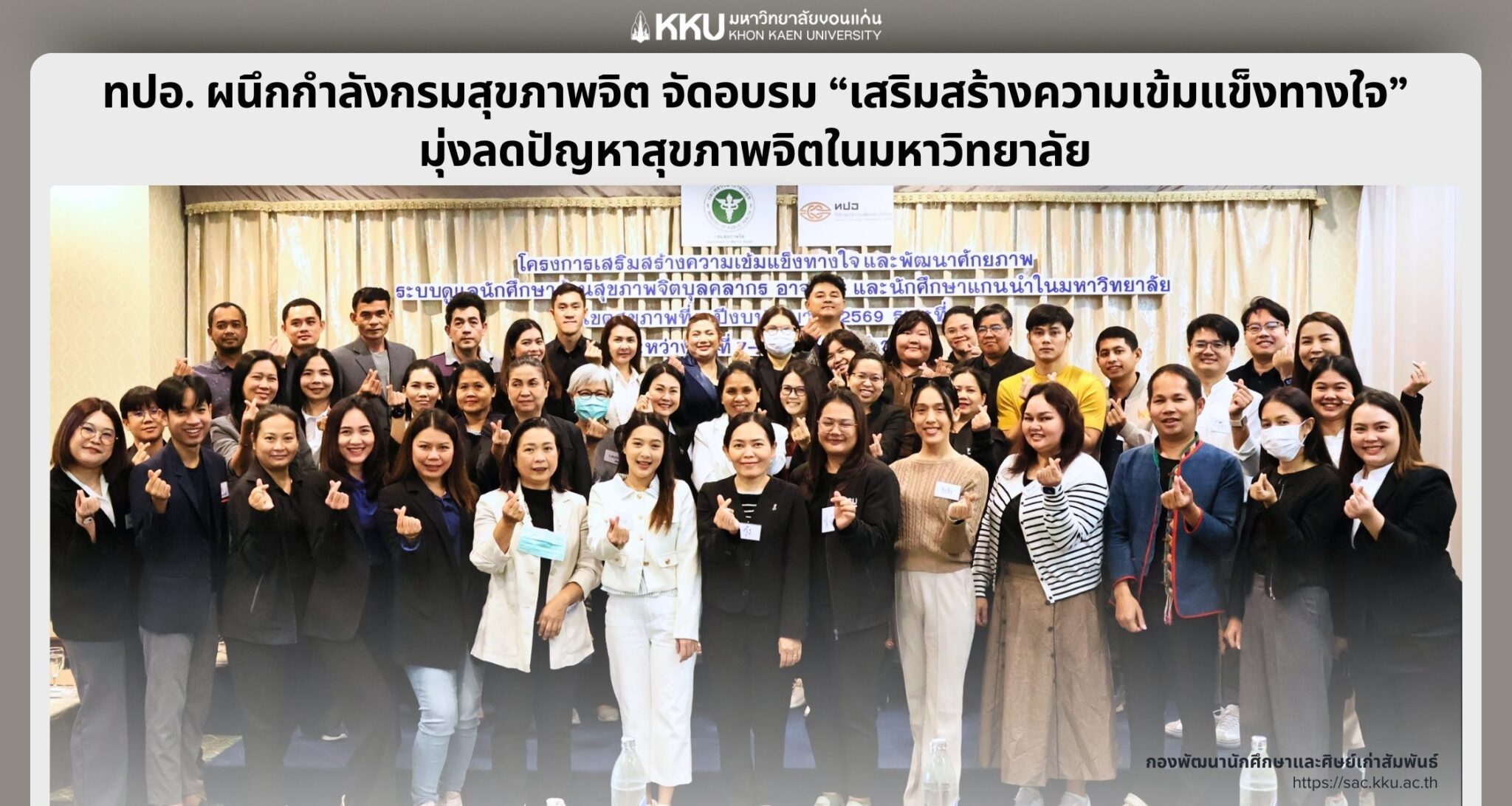 มข. ร่วม ทปอ. และกรมสุขภาพจิต จัดอบรม “เสริมสร้างความเข้มแข็งทางใจ” มุ่งลดปัญหาสุขภาพจิตในมหาวิทยาลัย