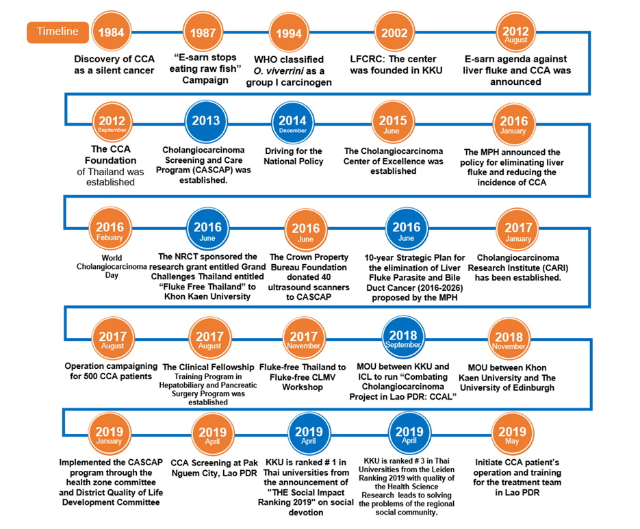 In addition, the Cholangiocarcinoma Screening and Care Program (CASCAP), led by Dr. Khuntikeo, was initiated in 2014 by Khon Kaen University with the aim of establishing a comprehensive program for the long-term control and elimination liver fluke infection and CCA. The program has the facilities summarized below: