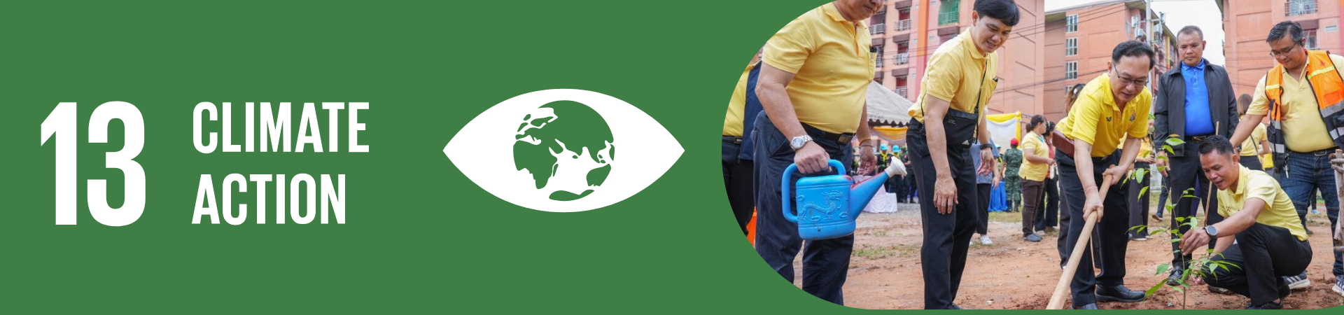 มหาวิทยาลัยขอนแก่นมุ่งเน้นการดำเนินกิจกรรมและโครงการเพื่อส่งเสริมความเข้าใจและความรับผิดชอบต่อการเปลี่ยนแปลงสภาพอากาศและการลดผลกระทบจากภาวะโลกร้อน ตามเป้าหมาย เป้าหมายการพัฒนาที่ยั่งยืน SDG13 โดยเน้นการพัฒนานวัตกรรมและแนวทางปฏิบัติด้านสิ่งแวดล้อมอย่างยั่งยืนในทุกภาคส่วนของมหาวิทยาลัย ด้านการจัดการด้านสิ่งแวดล้อม มหาวิทยาลัยได้ดำเนินการในหลายด้าน เช่น การลดการปล่อยก๊าซเรือนกระจก โดยสนับสนุนการใช้พลังงานทดแทนและพลังงานหมุนเวียน รวมถึงการปรับปรุงอาคารและระบบโครงสร้างพื้นฐานให้มีความประหยัดพลังงานสูงสุด นอกจากนี้ยังมีการส่งเสริมการใช้เทคโนโลยีสีเขียวและนวัตกรรมเพื่อบรรเทาผลกระทบจากภาวะโลกร้อนในชุมชนและภาคอุตสาหกรรมในกิจกรรมต่างๆ มหาวิทยาลัยขอนแก่นยังได้สร้างความตระหนักรู้ด้านสิ่งแวดล้อมให้แก่บุคลากร นักศึกษา และชุมชนท้องถิ่น ผ่านโครงการรณรงค์ การอบรม และสัมมนา รวมถึงการสนับสนุนงานวิจัยด้านการปรับตัวและบรรเทาผลกระทบจากการเปลี่ยนแปลงสภาพอากาศ การสร้างแนวทางการดำเนินชีวิตและการบริโภคที่เป็นมิตรและยั่งยืน