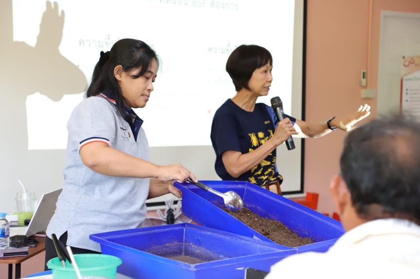 วิสาหกิจชุมชนได้รับความรู้ด้านการปฏิบัติที่ดีในการทำฟาร์มเลี้ยงแมลงวันลาย หรือที่เรียกว่า Black Soldier Fly (BSF) ทั้งการเตรียมอาหารเลี้ยงหนอน การจัดการพื้นที่ในฟาร์ม การจัดการและการแก้ไขปัญหาการผลิต นอกจากนี้ ยังได้เยี่ยมชมฟาร์มเพาะเลี้ยง BSF ถือเป็นการถ่ายทอดองค์ความรู้ให้แก่เกษตรกรในพื้นที่ เพื่อสร้างอาชีพและสร้างรายได้ให้กับชุมชน สามารถพึ่งพาตนเองได้ BSF เป็นแมลงโปรตีนที่ใช้เป็นวัตถุดิบในการผลิตอุตสาหกรรมอาหารสัตว์ ถือเป็นแนวทางหนึ่งในการช่วยลดต้นทุนให้เกษตรกร ตอบโจทย์เป้าหมายการพัฒนาที่ยั่งยืน (Sustainable Development Goals: SDGs) ขององค์การสหประชาชาติ โดยเฉพาะอย่างยิ่ง เป้าหมายที่ 2: ยุติความหิวโหย บรรลุความมั่นคงทางอาหารและยกระดับโภชนาการ และส่งเสริมเกษตรกรรมที่ยั่งยืน เป้าหมายที่ 9: สร้างโครงสร้างพื้นฐานที่มีความยืดหยุ่นต่อการเปลี่ยนแปลง ส่งเสริมการพัฒนาอุตสาหกรรม ที่ครอบคลุมและยั่งยืน และส่งเสริมนวัตกรรมให้เข้มแข็ง ต่อไป