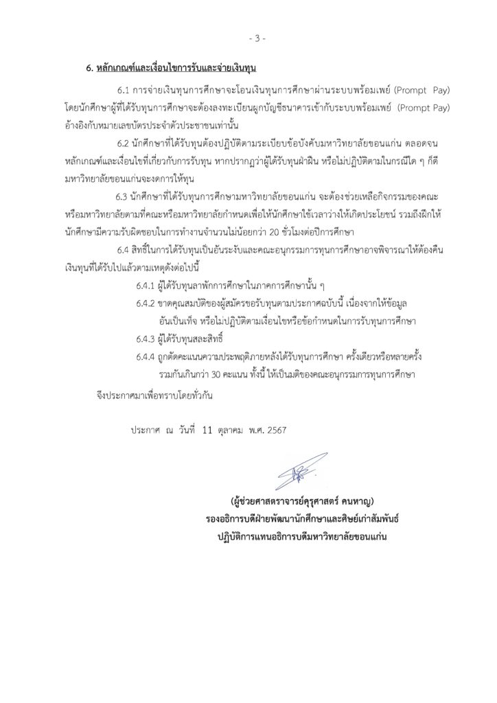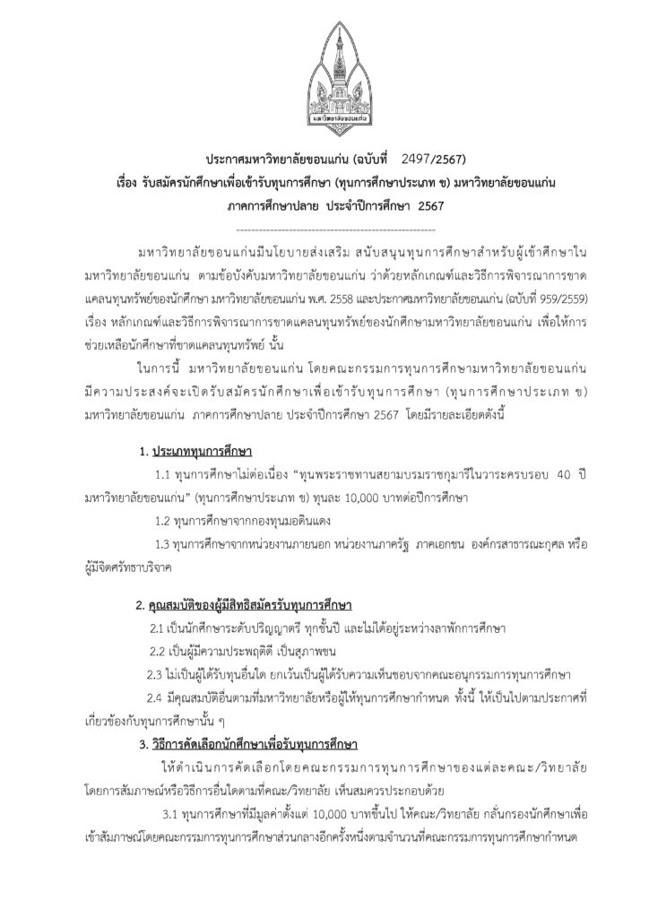 ประกาศมหาวิทยาลัยขอนแก่น (ฉบับที่ 2497/2567)