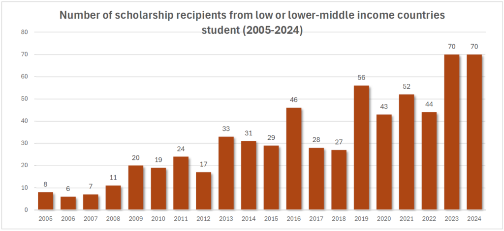 Number of scholarship recipients from Low or lower-middle income countries student (2005-2024)