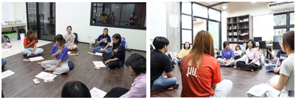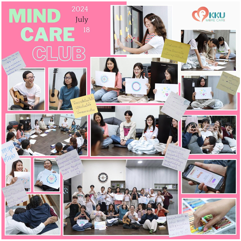 The Counseling and Guidance Center (KKU MORE CARE) also organized the first “Mind Care Club” group activity on the topic of “The Art of Self-Love” for Khon Kaen University students. The workshop, held on February 19, 2024, featured two guest speakers: Thidawan Yok-Ubon, an independent facilitator, and Paitoon Permsirinivas, a music therapist. The activities included art therapy, such as drawing, coloring mandalas, and music, to help students relax, understand themselves, and share emotions and encouragement with each other. One student commented after the workshop, “I returned as a more fulfilled version of myself.
