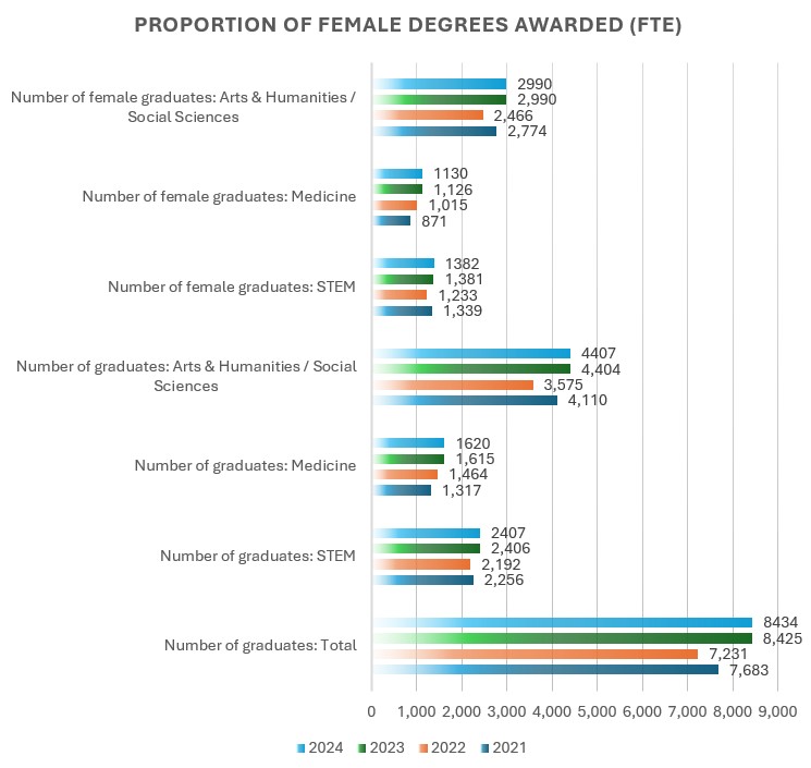 Proportion of female degrees awarded 2021 2022 2023 2024