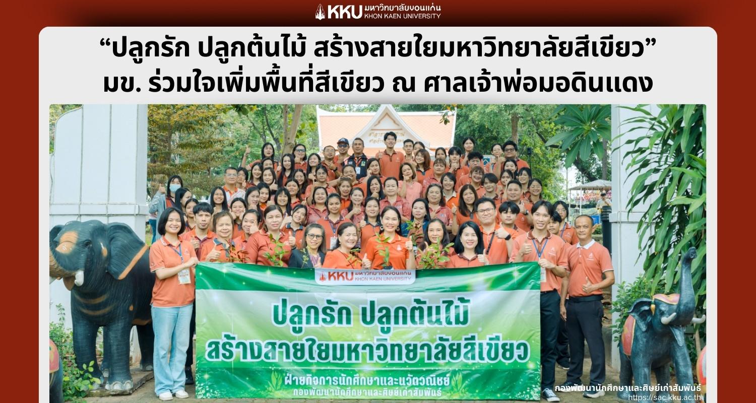 มหาวิทยาลัยขอนแก่นเดินหน้าสานต่อโครงการ “ปลูกรัก ปลูกต้นไม้ สร้างสายใยมหาวิทยาลัยสีเขียว” อย่างต่อเนื่อง เพื่อสร้างพื้นที่สีเขียวอย่างยั่งยืน พร้อมปลูกฝังจิตสำนึกรักษ์สิ่งแวดล้อมและสร้างความผูกพันต่อสถาบัน โดยมีคณะผู้บริหาร...